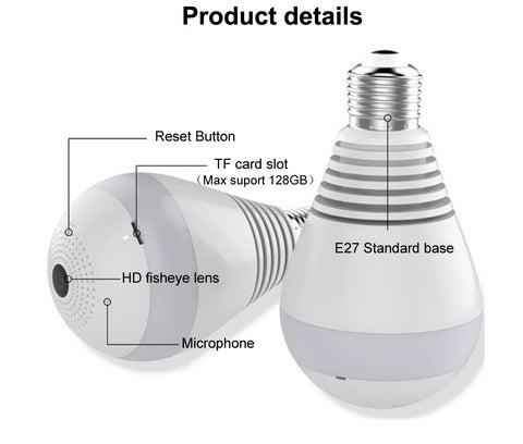 1080P HD WiFi IP Camera 360° Panoramic Fisheye Bulb Light Home Security Camera Bulbs