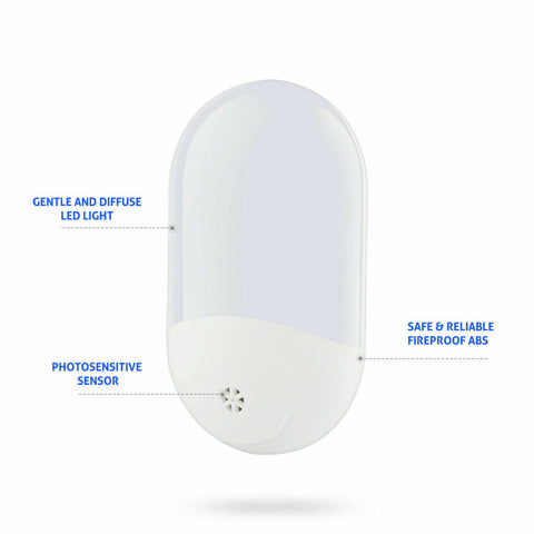 Automatic Lighting--This night light is produced with a smart LED photocell light sensor, plug it on the socket, then the night light will turn on automatically if the circumambient lighting becomes insufficient.